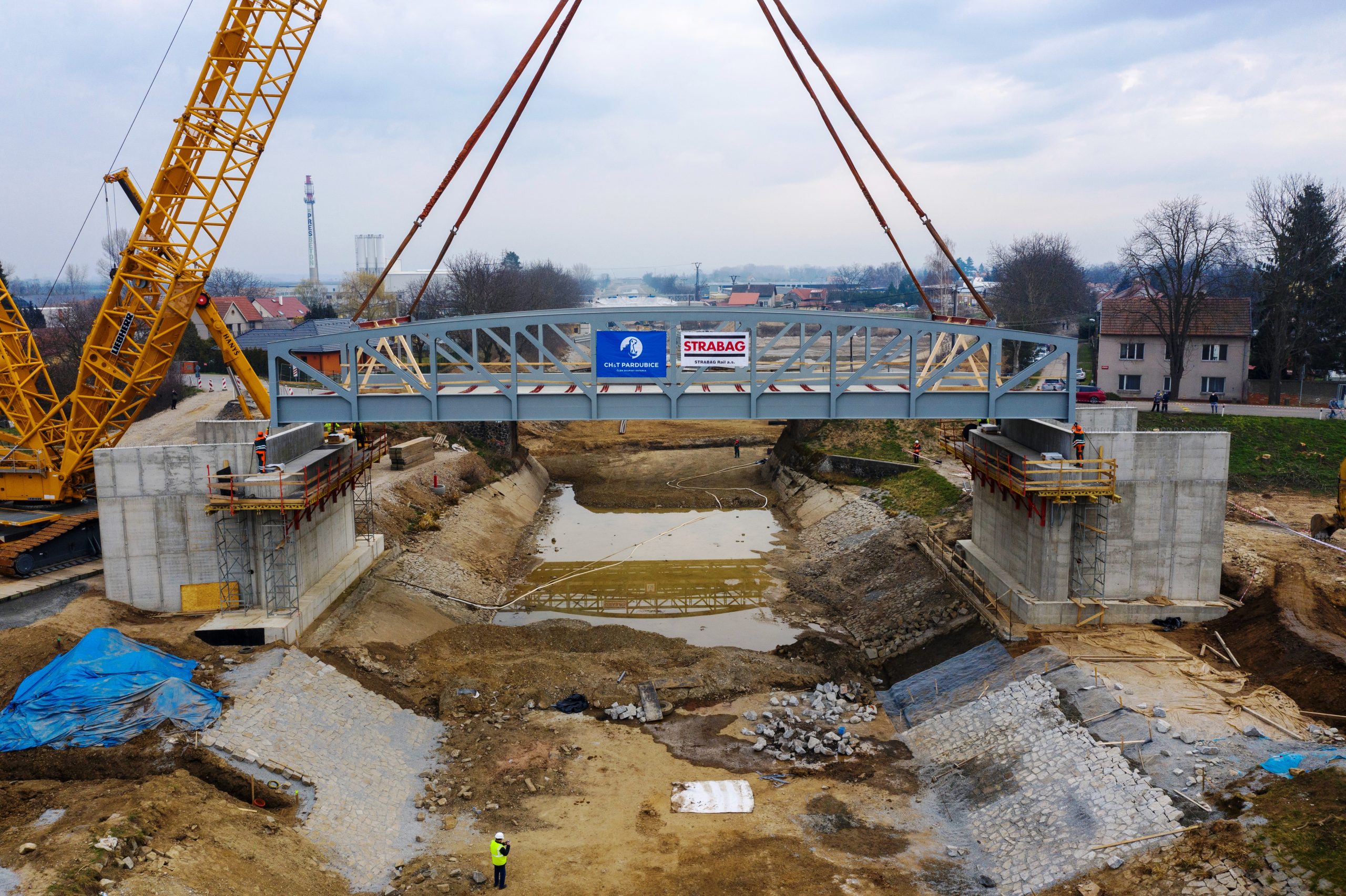 Stavbu Zabezpečení podjezdných výšek na Vltavské vodní cestě, kanál Vraňany – Hořín, Ia. etapa, realizují dodavatelé STRABAG Rail a.s. – EUROVIA CS a.s. – OK Třebestovice a.s. se stavebními náklady 600 mil. Kč bez DPH. Stavba je financována z prostředků Státního fondu dopravní infrastruktury. Při provádění stavebních prací zhotovitel dodržuje požadavky všech předpisů týkajících se ochrany životního prostředí a nakládání s odpady.