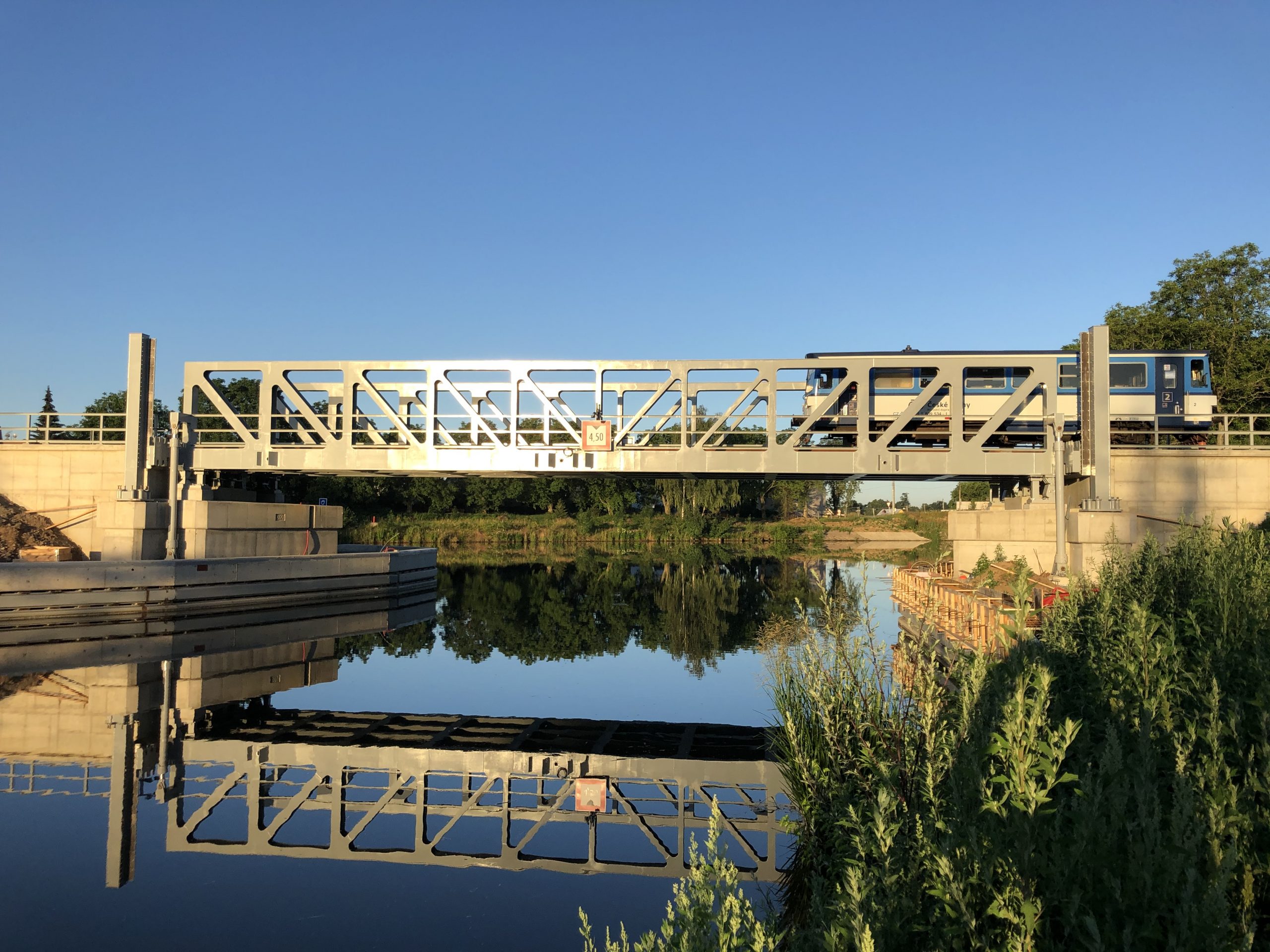 Železniční most je koncipován jako zdvižný, byť ke dni zavedení provozu nebude zdvih mostu ještě dokončen. Na mostě, konkrétně na kolejových pasech, se nachází unikátní zařízení, které zajištuje bezpečné rozpojení koleje při zdvihu mostu, ale především bezpečné spojení kolejnic při dosednutí mostu do spodní polohy. V České republice se doposud žádný funkční zdvižný most nenachází, proto bylo nutné zmíněné zařízení vyvinout. Tento most se tak stane unikátním, jak pro drážní dopravu, tak i pro dopravu vodní. Původní stabilní podjezdná výška pro lodě 4,50 m zdvižením mostu za několik minut naroste na 7 m a umožní bezpečné proplutí vysokých osobních lodí i nákladních lodí s kontejnery.