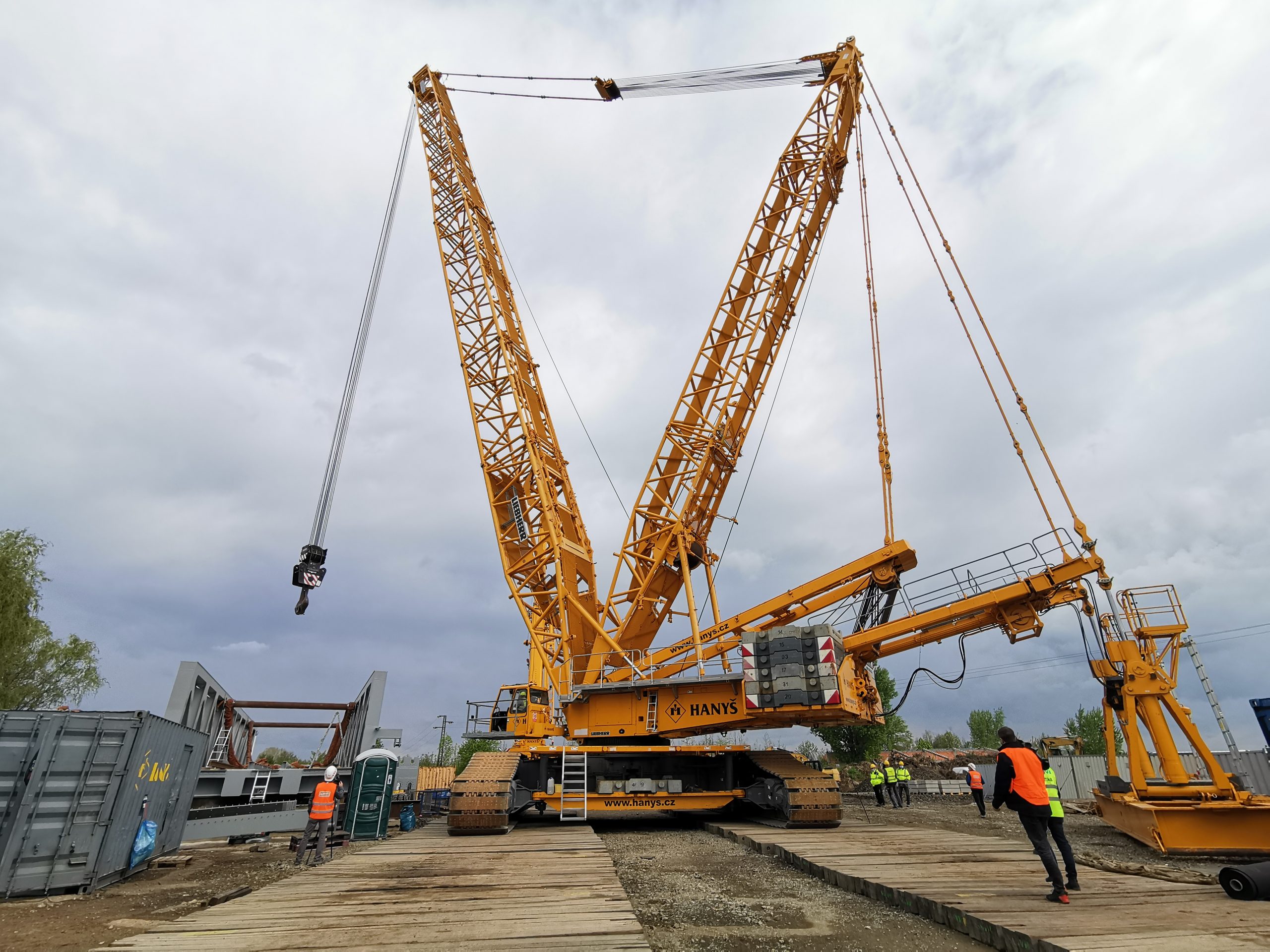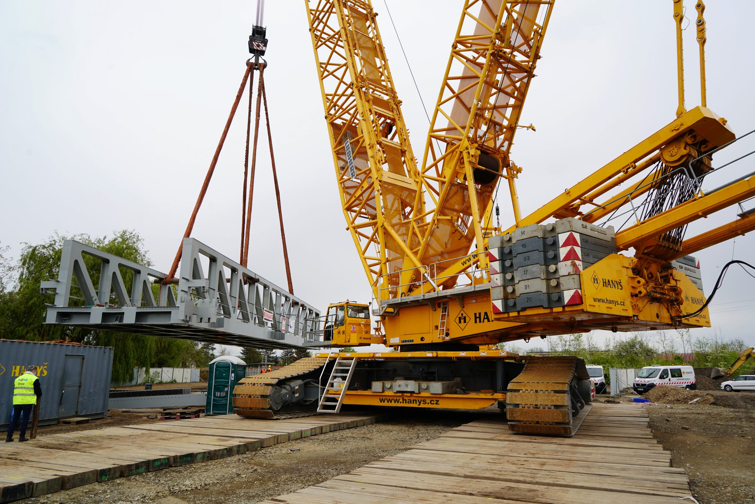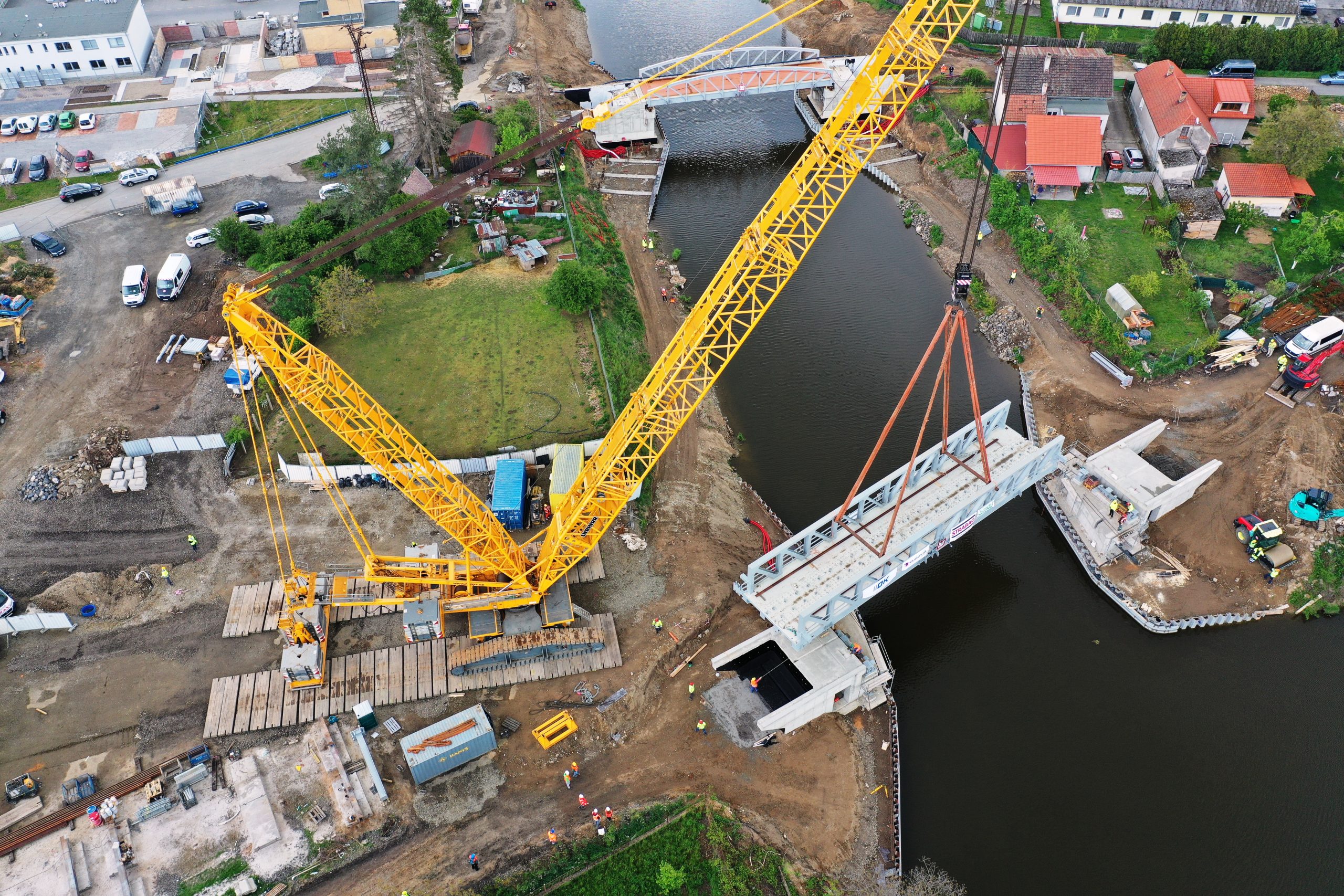 OBRAZEM: Největší jeřáb osadil v Lužci první železniční zdvihací most v ČR
