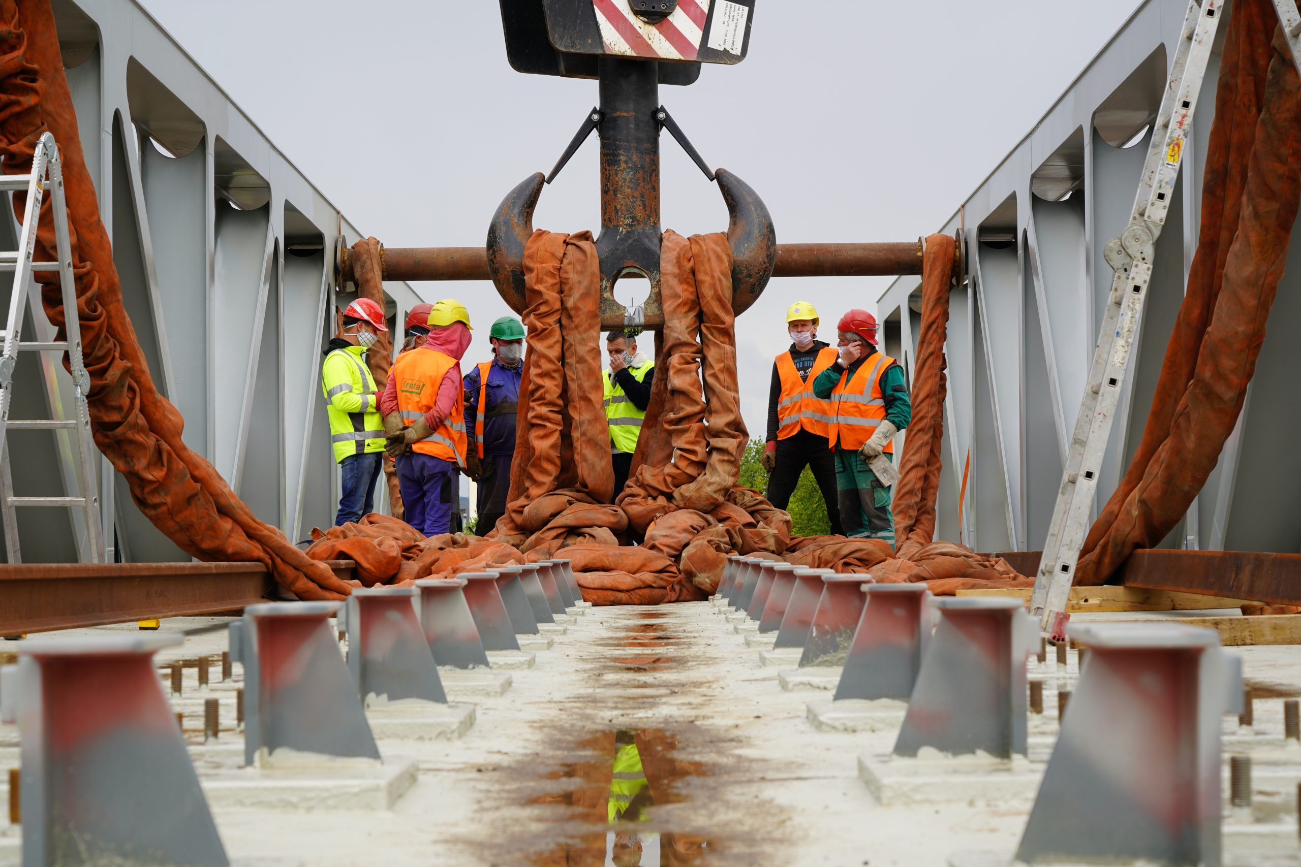 Osazování železničního mostu v Lužci nad Vltavou 5. května 2020