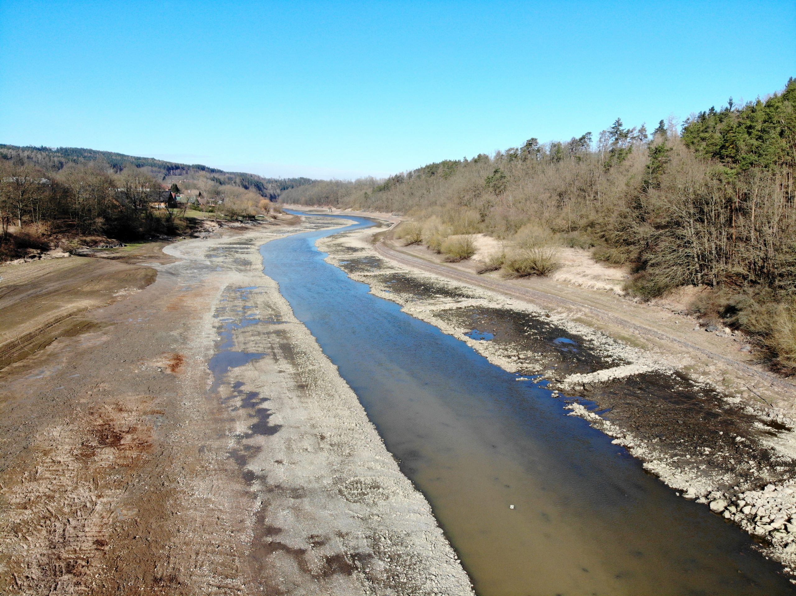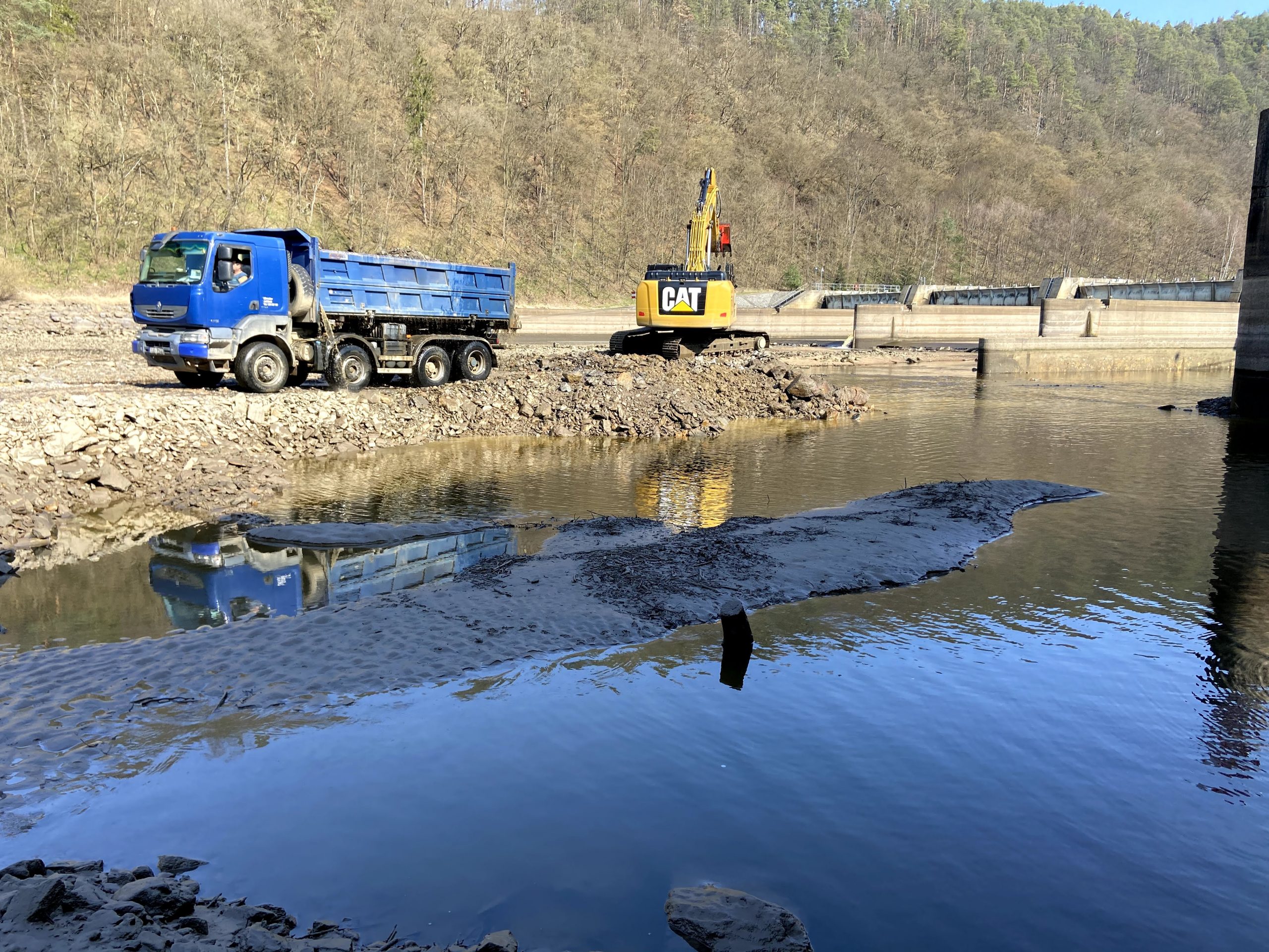 Povodí Vltavy dokončilo v březnu práce na 1. etapě prací na zajištění plavebních hloubek pod vodním dílem Kořensko na konci vzdutí přehradní nádrže Orlík.
